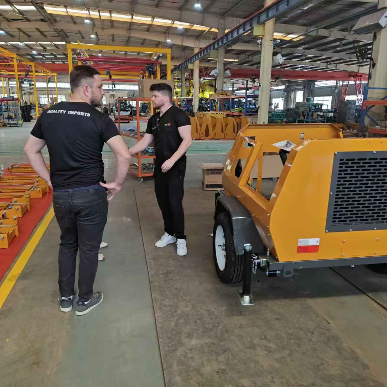 某國外客戶來我廠參觀考察,在工作人員的陪同下,參觀了生產(chǎn)車間與產(chǎn)品展廳,對(duì)我廠生產(chǎn)的小型壓路機(jī)、移動(dòng)照明車、平板夯等產(chǎn)品贊不絕口,詳細(xì)向業(yè)務(wù)人員了解各個(gè)型號(hào)的配置與參數(shù),達(dá)成合作意向